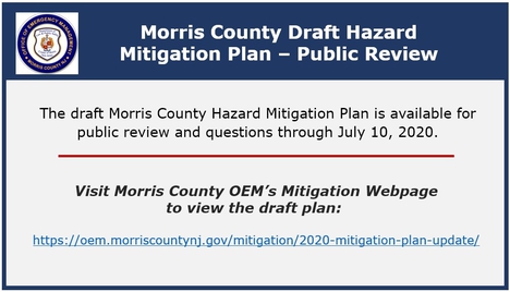 Since June 25, 2020 the number of confirmed Coronavirus (COVID-19) cases in the Township remain at 109 cases. We are working closely with our partners at the Morris County Health Management and Office of Emergency Management. For health related information visit the Morris County Health Management website at: https://health.morriscountynj.gov/coronavirus/#cases