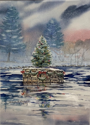 The Mule Bridge Pier crossing the Rockaway River at Powerville during Christmas