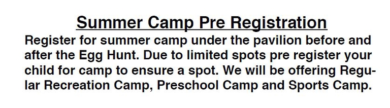 3/27 - Recreation Summer Camp Pre-registration - RVA Pavilion - before and after Egg Hunt (rain date March 28th)